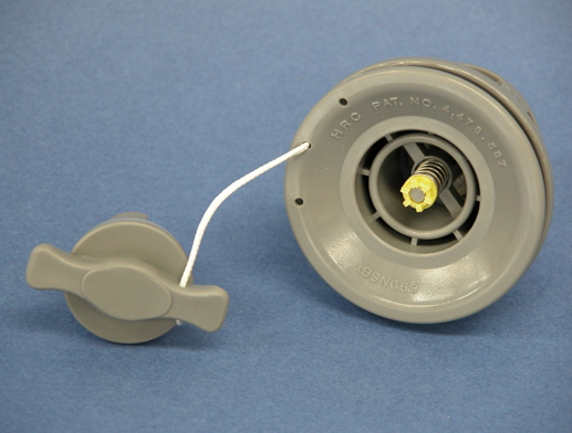 Who would have thought there’s something to be said about bayonet nozzles? Well there is. There are two types: plain (below right, Gumotex) and crossbar-peg or detent (left, Bravo). Both need soft spacer washers to fit snugly against your boat’s raft valve, but the small peg inside the green one will press open your valve stem as you connect it.