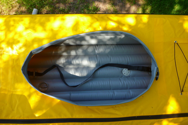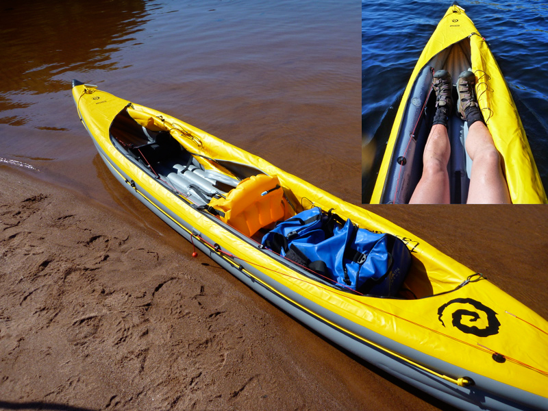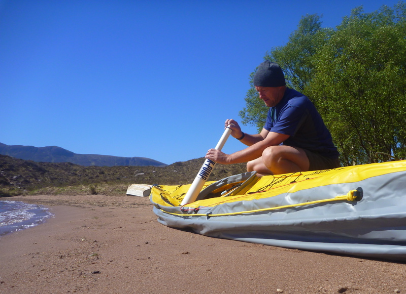 Next, you used to top off by mouth on a separate twistlock valve: the firmer the boat the better it rides. In the video below (speeded up x 15) from walking up to a beach with my paddle in my pack, to loading up and paddling away took 8 minutes.