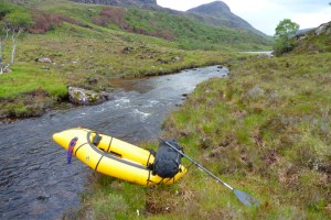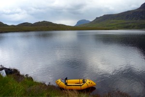 Back to the boating; this was my first proper run in my Yak and as I pulled smoothly away from the shore of Loch Doire (left) it struck me how cool it is to trek over the hills with a pack of only 10-12 kilos, inflate your mini boat and set out across a body of water with your kit slung over the bow. In fact I’m convinced a frontal load makes packrafts faster as, despite the wind drag, the weight reduces the left-to-right yawing.