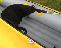 1. The inflatable seat proved to be junk. It kept developing major leaks – always at the point where it is folded through a 90 degree bend. Clearly this is a stress-point which the kayak’s fabric construction can’t handle. After my first one popped, I sent it back to Gumotex who replaced it – although this didn’t go smoothly: the first time they just sent the boat back to me without having done anything to it! Eventually, they sent me a replacement boat, but when the seat on this one popped I decided to rip the inflatable seat out and replace it with a more conventional back rest as you can see in the photos. This is far better, and also makes the boat narrower – I now don’t skin my knuckles against the side of the boat with each paddle stroke!