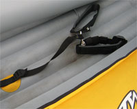2. The inflatable footrest is useless [as it is on many Gum boats – see this]. If you want to paddle, you need to brace your foot against something, and this isn’t it! I decided to remove the cushion and replace it with two foot-loops on an adjustable strap. I was a little dubious about having my feet strapped into the boat in case of capsize, however I’ve found I can get my feet in and out without any trouble.