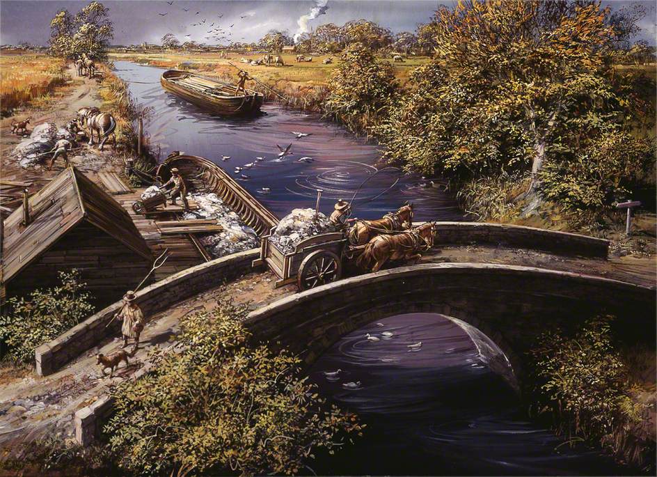 Nearly two hundred years ago Turner depicted tall ships gliding serenely along the then new 4.5-mile canal (above). During the canal boom preceding the railways, it linked Roman-era Chichester with the huge natural inlet of Chichester Harbour and the adjacent naval fleet at Portsmouth. To the east was a canal to the Arun & Wey navigation (left) which was a short-lived inland link between London and Portsmouth commissioned at a time when Napoleonic fleets threatened the English Channel.