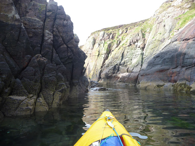 Coming round the eastern side of Ribhinn, even this skerry managed to sustain a small capping of grass. We nosed into a kayak-wide geo and found ourselves in a twin-arched cave, another paddleable arch (above) to add to my list.