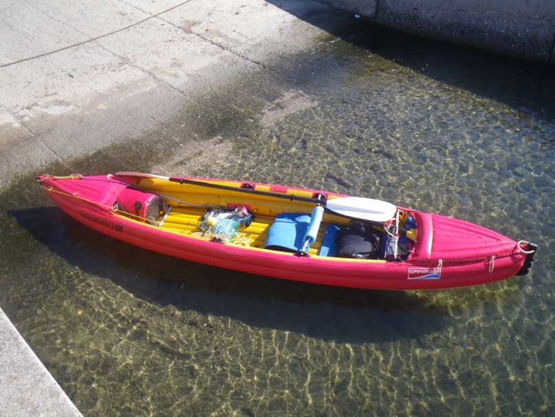Instead I got some non-padded Anfibio packrafting straps (they’re different now). With my biners they come in at 270g. The delta-straps dangling off the sides are a clever idea, designed to give a more direct pull when rolling a packraft for example. Can’t see myself doing that in any of my boats. Whether you’re rolling or just paddling, in rough water the more direct connection with the boat the better. I’m a big fan of these light but effective straps now. No need for paddling.
