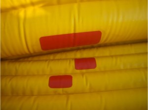 A 70 x 15cm Hypalon off-cut (close enough to Nitrilon) was 14 quid on ebay and once trimmed left enough for another strake or two. I had some Polymarine two-part adhesive (below) and glued the strip to the boat’s curved form with the floor inflated, even if that meant working the roller to press it all together was less effective. I then slathered some Seam Seal around the nose of the strake to protect it from unpeeling (less runny Aquaseal would have been better but a Seam Seal tube was open. More on glues here).