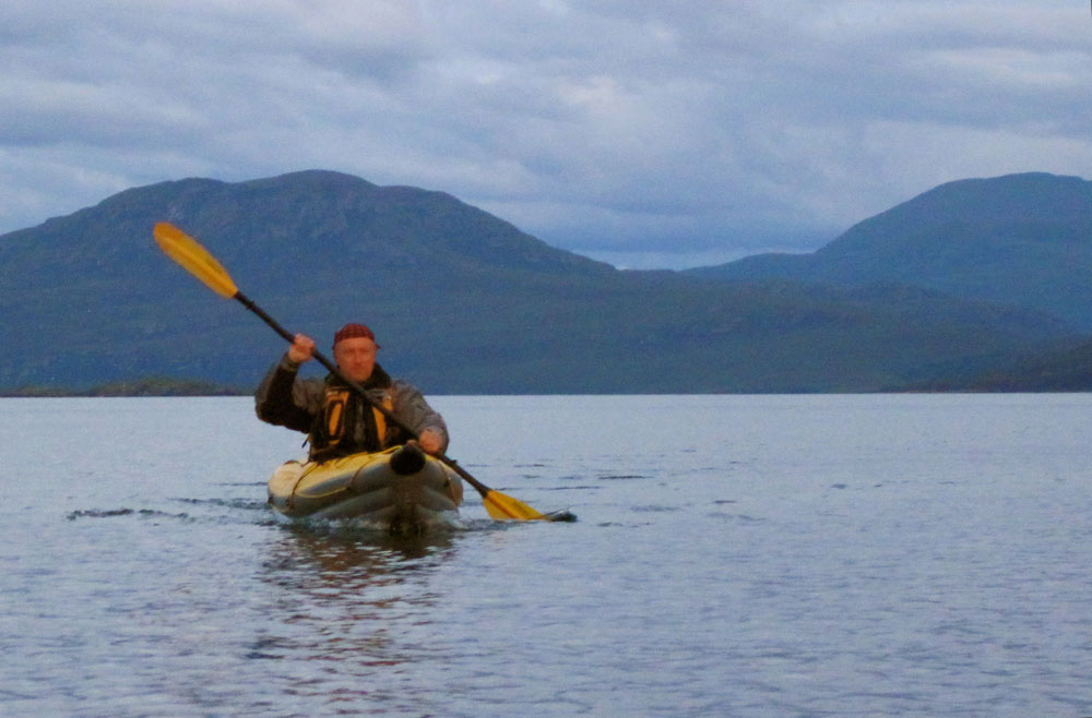 Jon glided along in his LV like he was on rails; you got to hand it to these hardshell SinKs, they may be a pain to carry on the Tube but they sure look good on the water – viewed from the stable-as-a-cow-pat perch of an IK, of course! Heck, it all felt like proper sea kayaking. Further up, around Rubha na Coigach headland I dare say it all gets pretty hairy, but it sure would be nice to cruise further along this coast with the Mrs some warm, calm and sunny evening.
