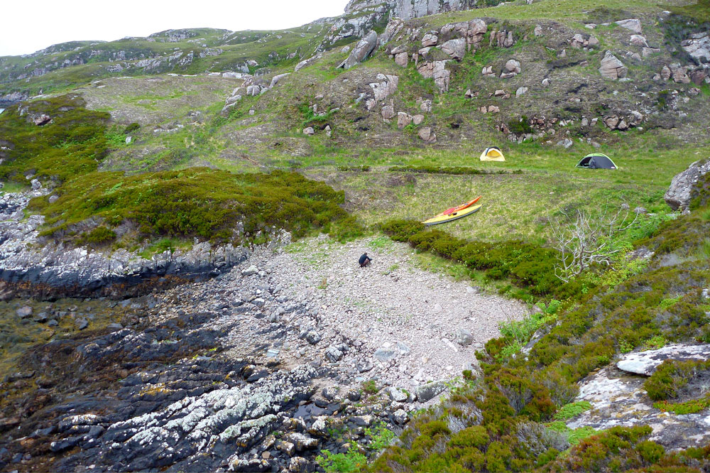 We did the best we could on Saturday and set out from the campsite beach (left) to plant our flags on the calm side of Isle Ristol (which you can walk to at very low tide). Old Dornie was standing room only that day as a local skiff racing regatta was on, postponed from last weekend when Jon and I spent our time daring ourselves to do something and go somewhere.