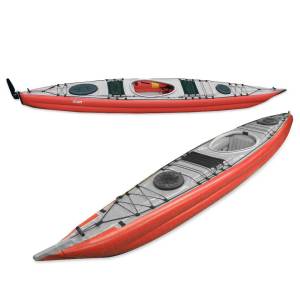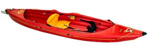 The K40 is similar to the Grabner Holiday II which might be classed as one of the original twin-side beam IKs which begat the Gumotex Seakers I and II. The solo Seaker 1 (left; 4.8m x 75cm – 18 inches more than a K40 and 3 inches wider) is officially as expensive as the K40, though has been going at half price ($1500) from Innova in the US. A fellow IK blogger recently got one. At just £1000 that’s a great price, but the problem is the deck is fixed (packing and drying issues, IMO) and it manages to weigh no less than 33 kilos/73lbs according to the Gumo.cz website (US distributors Innova claim 60lbs/27kg). Whatever it is, I had a chance to buy a used Seaker from Czecho a year or two back for just £800, but pulled out when I appreciated you can’t take a boat that heavy on a plane too easily, nor haul it too far.