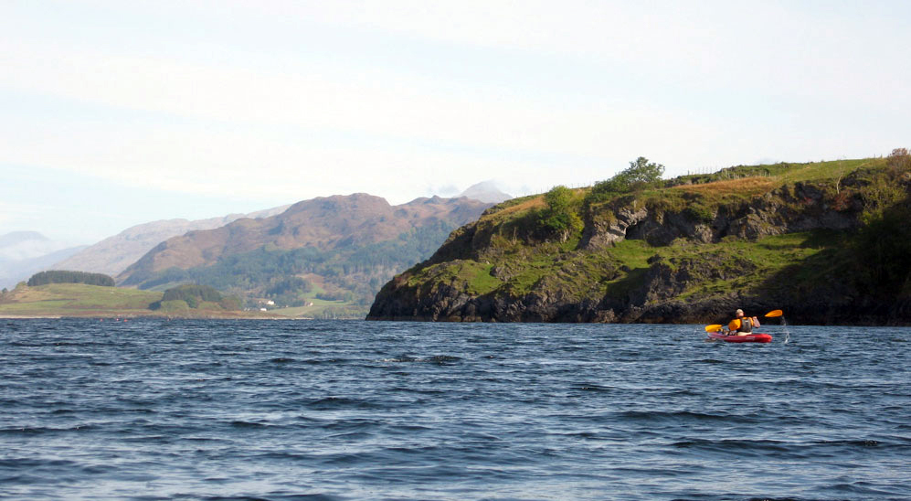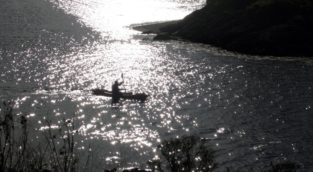 A short slide show of an afternoon’s paddling we did a couple of years ago after the Spey. Jon in the Carolina found this route description in this book, winding in and out of a few islands and so never far from a shore which was fine by us. It’s hardly ‘out there’ but for us it was quite a step up, calculating the tides, wind, currents, UV refraction index and negotiating the swell that might have exceeded two feet at times – plus dealing with some dodgy rip on the way back that was there just where the route description said it would be. After the castle, coming back in between Shuna island and the shore, the wind or tide or something was against me while Jon glided effortlessly forth in his hard plastic boat. That’s the good thing with an IK, you get a free work out! All in all, a lovely October’s day on the Scottish west coast.
