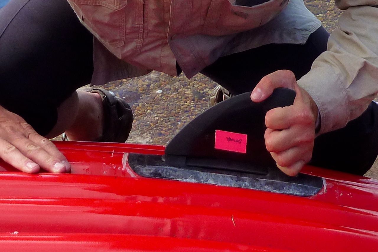 On shore a skeg is a pain with a loaded boatSkeg: underneath and at the backGluing a Gumotex fin to a Grabner (which come with no skegs)