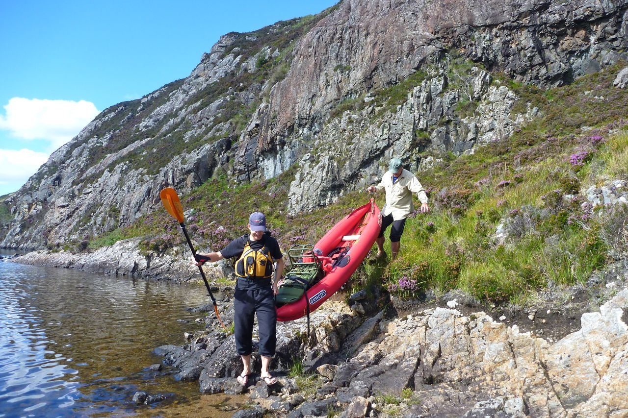 With light winds forecast, we picked an easy circuit with about 4km of loch paddling and a couple of short portages where we could carry the inflated boats. We often paddle together in the Seawave but I’m not sure if the g-friend has paddled a packraft since a quick go in my Llama back in 2010. So this would be a good test on how a beginner handled the Alpha.