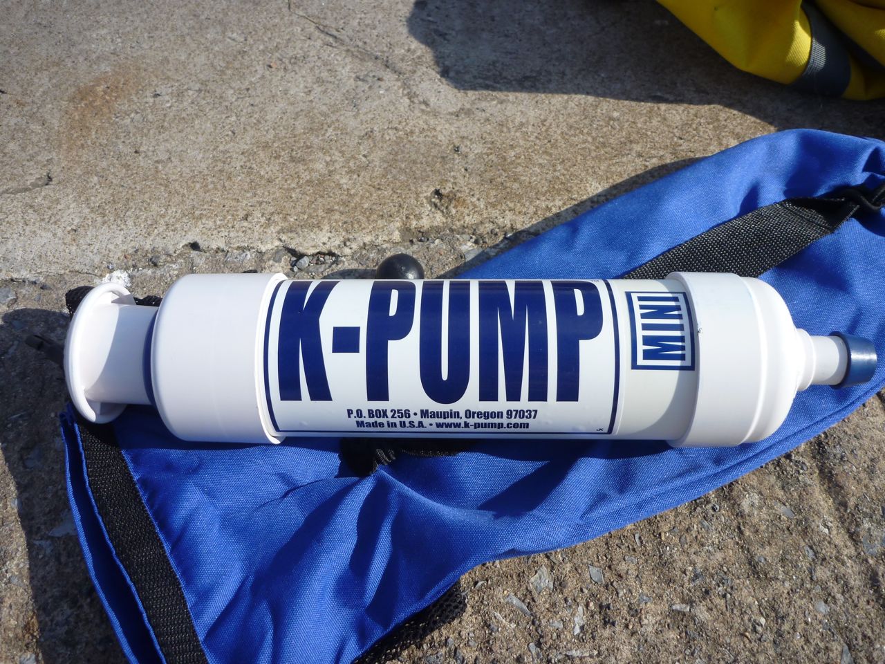 The K-Pump Mini (above right) is a handy top-up pump or compact 600-g travel pump. It took 15 minutes to fully inflate up my 14-foot Seawave; the push-fit nozzle works on any IK with one-way spring valves. You have to press and hold the nozzle against the valve. Using it a lot one time, I got the feeling it might break something or wear out the seal (which needs regreasing once in a while). I’ve also used the K-Pump to top up my Nomad S1 packraft which was too big and long to inflate firmly with just its airbag. Fuller review of the K-Pump Mini here. They’re hard to find in the UK, the very long, and slim US-made K-Pump 200 (right) may also be suited to higher-pressure dropstitch applications.