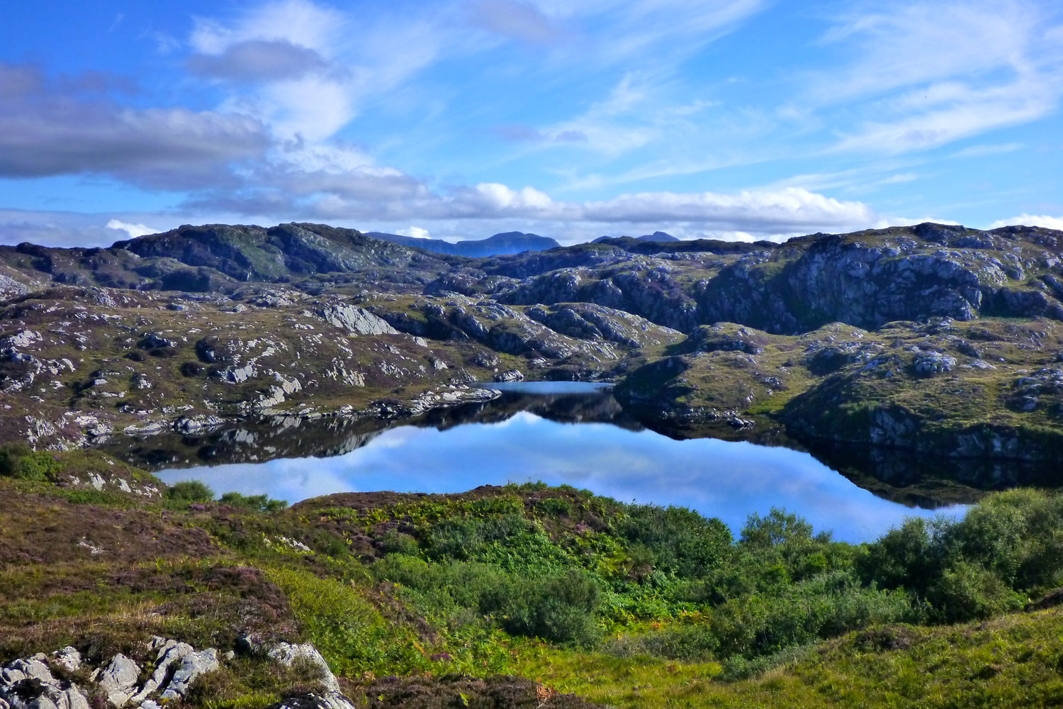 On T.Beg’s 83-m summit looking ENE towards Achiltibuie and the Assynt mountains.