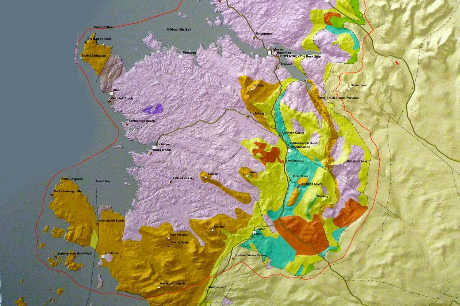 In the cafe there was Rocky Road in the cake cabinet and a geology map on the wall. Pink is your 3 billion-year-old under-icing of Lewisian gneiss; the orange is a creamy overlay of Torridian sandstone. Interestingly, the map showed Horse Island as the only Summer made of gneiss. Who’d have known? High time then to get your schist together and watch a geology lesson.
