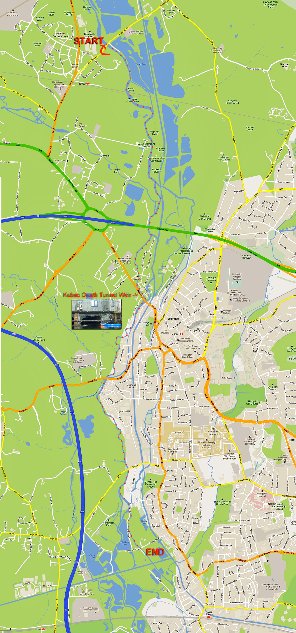 The other day a friend relatively new to yaking invited me and a mate to paddle a river near her home. The Colne runs between the edge of Greater London and the M25 motorway just a stone’s throw from Heathrow airport.