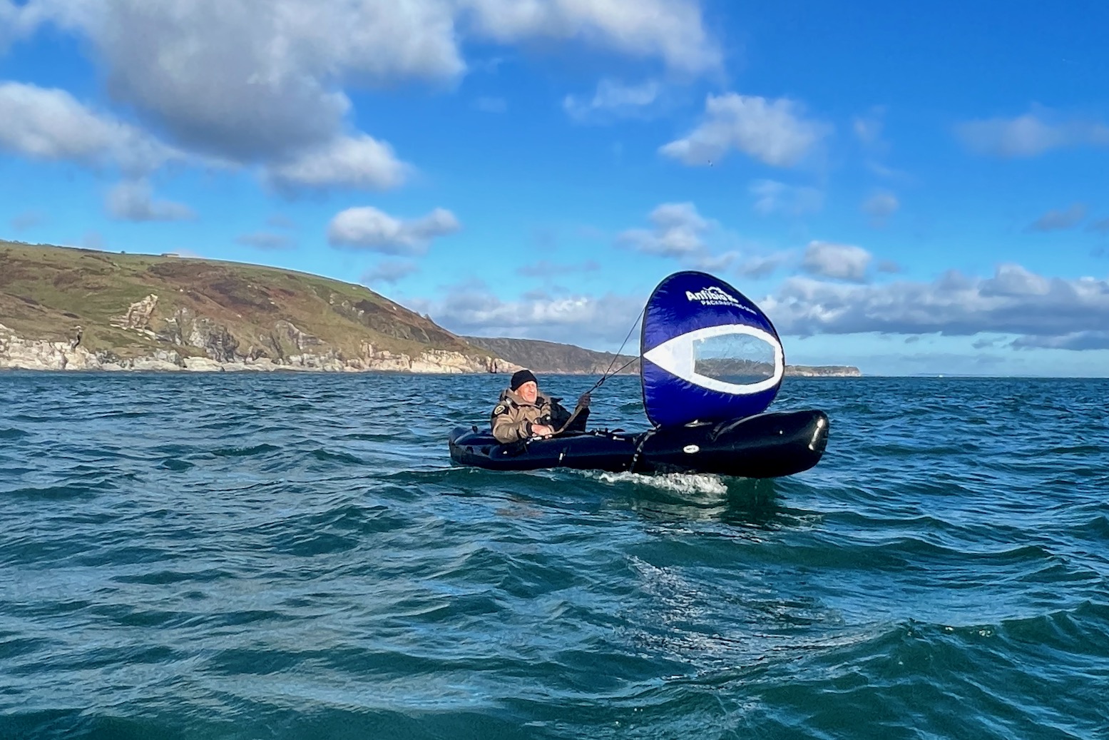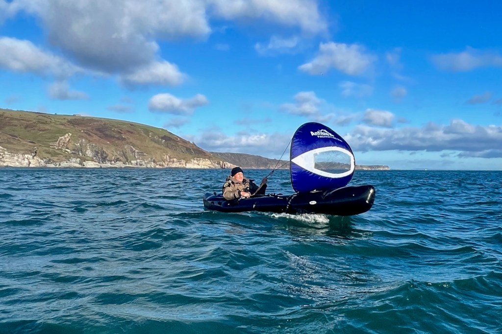 A few clicks online and a 99-euro Anfibio PackSail (same as the defunct WP) got jammed in his letterbox. With a chilly offshore wind blowing off the south Cornish coast, Phil launched his 12-foot long R2 Barracuda Pro from a handy RIB and set off for Brittany.