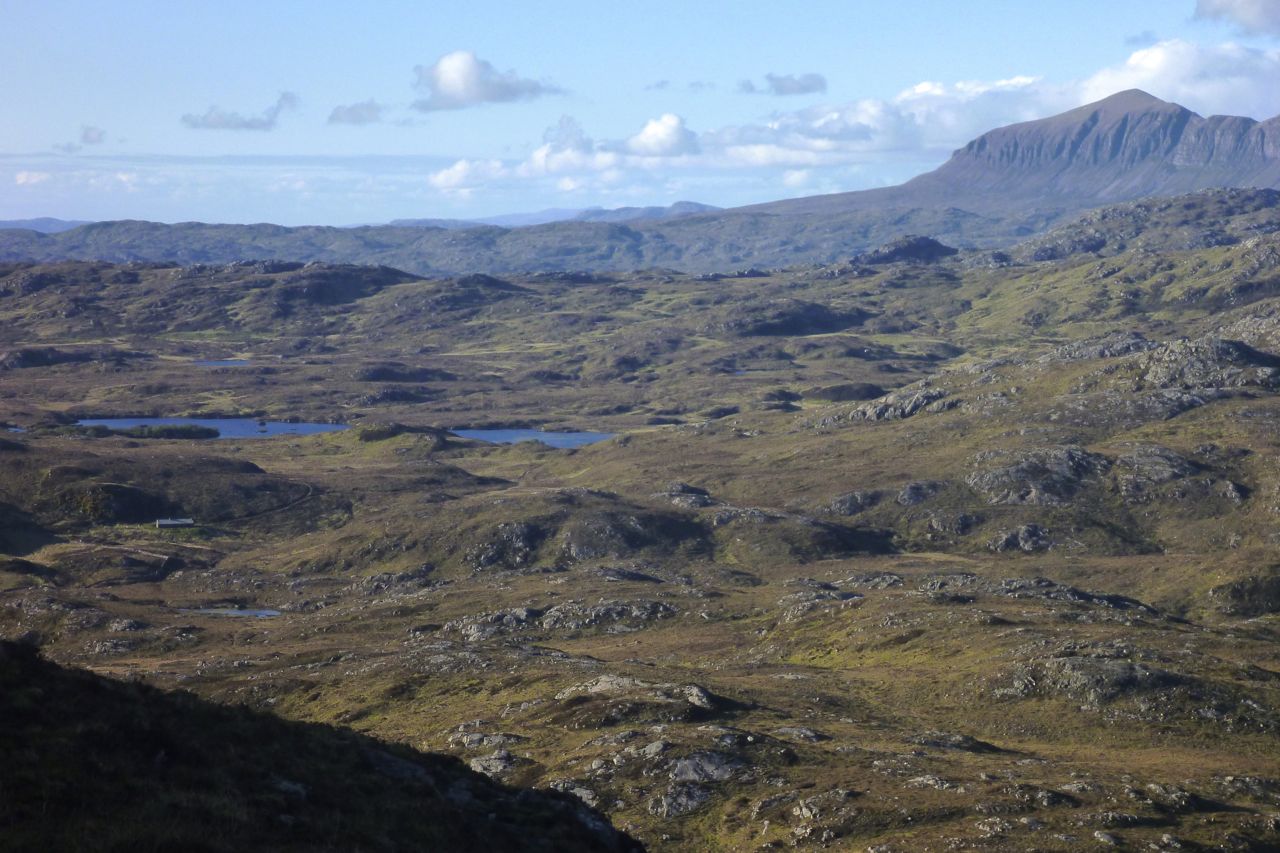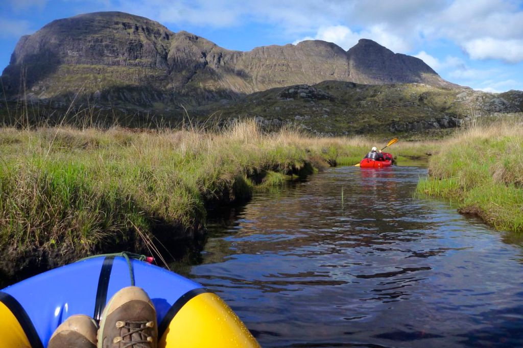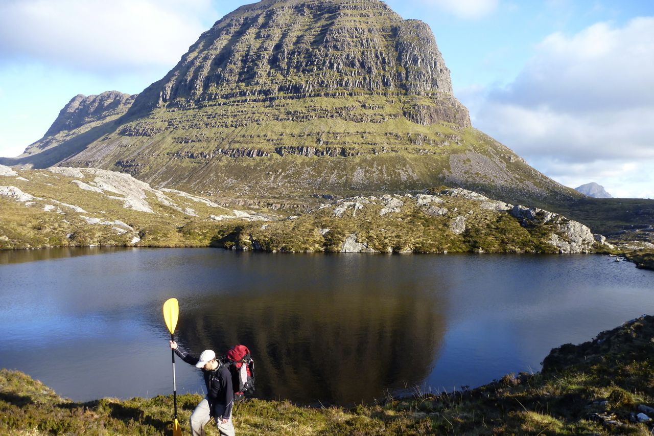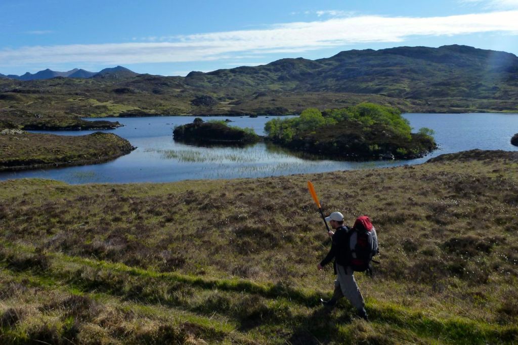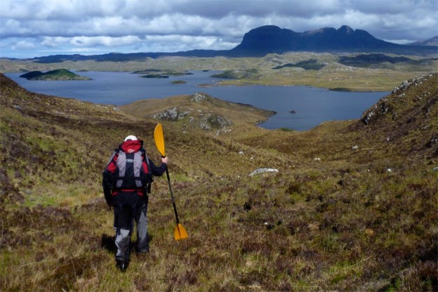 With a boat the Narrows can be paddled, so can Loch Sionasgaig, cutting out a long cross-country yomp. Another quickie over Fionn Loch, up and over or around Suilven and paddle the west end of Loch Assynt to Tumore from anywhere north of the sluice. Job done.